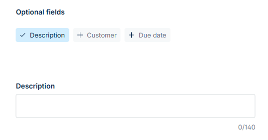 Optional → The field appears under the Optional fields section on the payment request setup page. The user can choose to complete it, but it’s not mandatory.