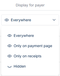 Only on Receipts → The field is included on the receipt but not shown on the payment page.