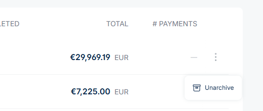 - Click the three-dots icon next to the pay run you want to unarchive.