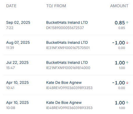 For example, in the screenshot below, there are two transactions involving 'BucketHats Ireland LTD', each from a different payment account - but within the same merchant account.