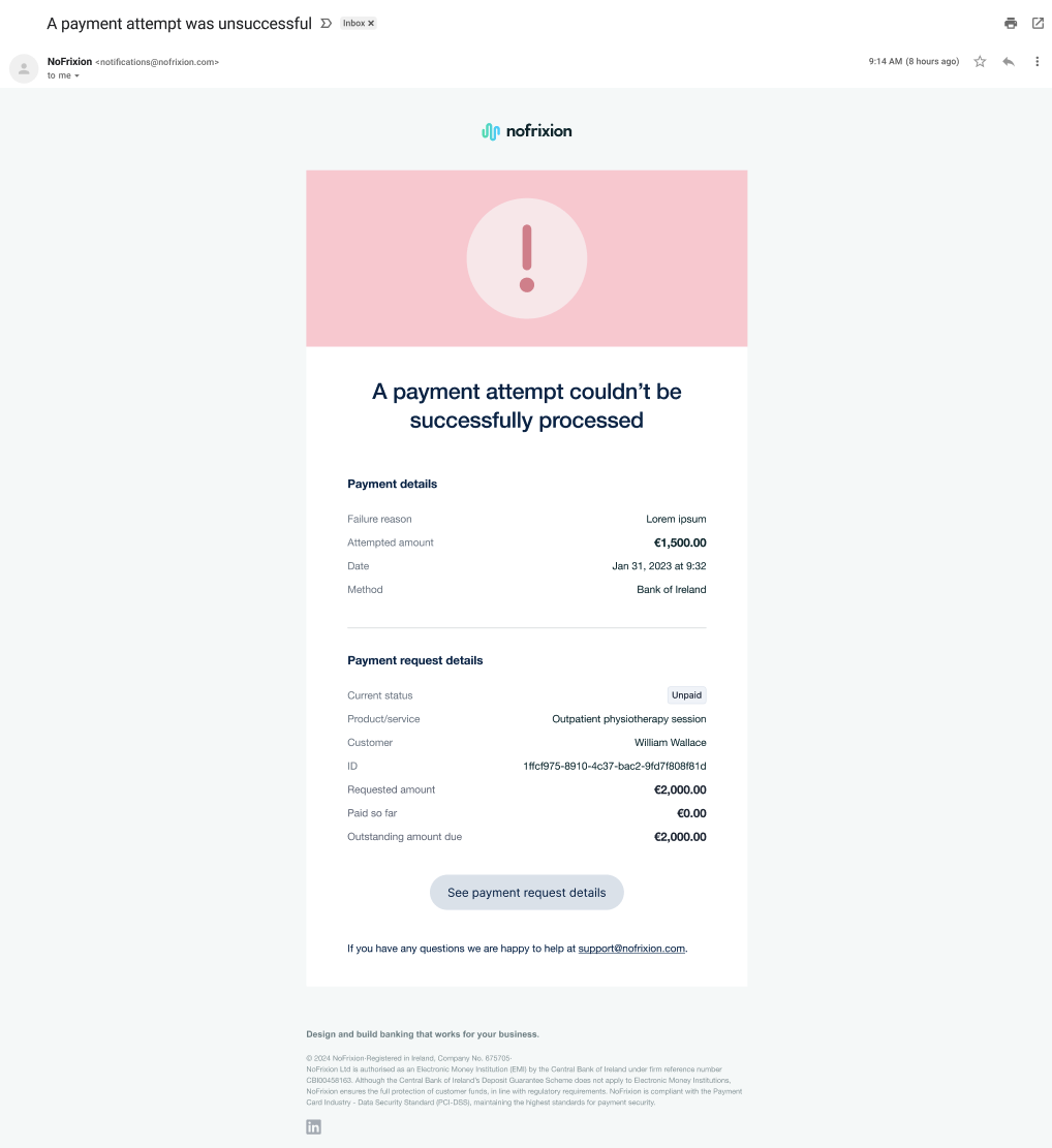Email Notification: Unsuccessful Payment Attempt for a Payment Request
