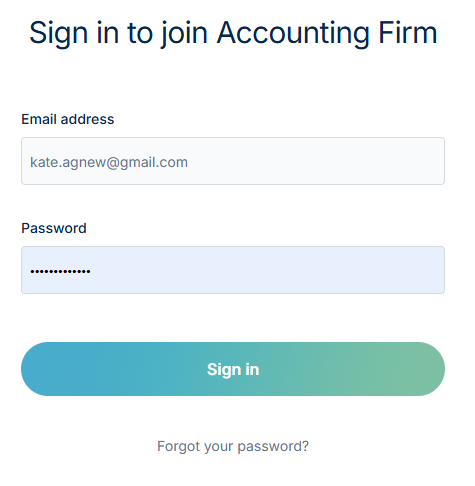 - The invited user clicks the link and is prompted to sign in to join the merchant.