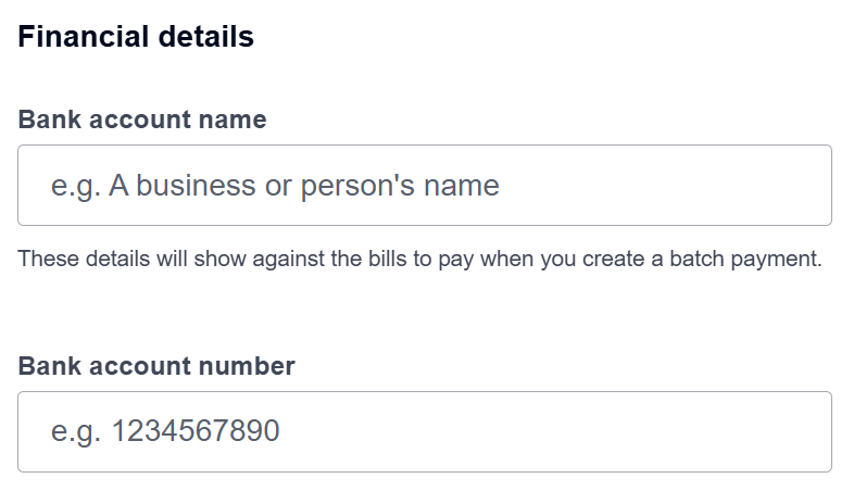 - GBP: Enter the Sort Code and Account Number