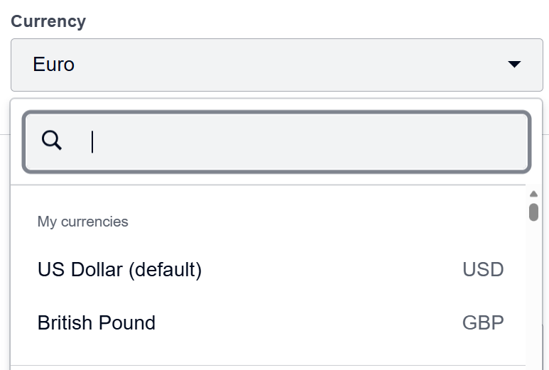 - Ensure the correct currency is selected that matches the bank account information: