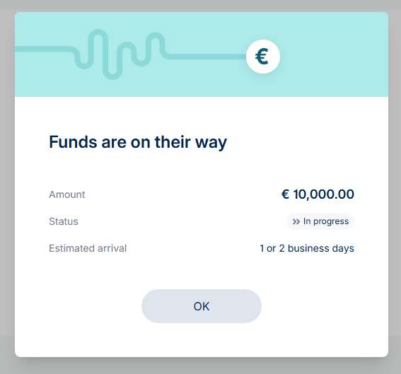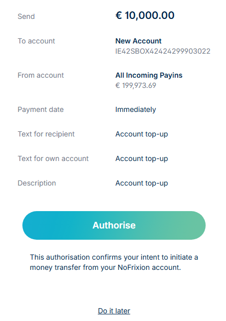 This initiates a direct account to account transfer between your bank account and your new NoFrixion account.