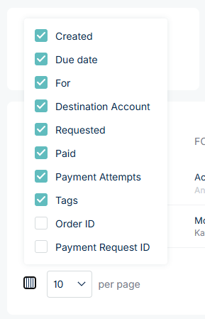 - At the bottom-left corner of the table, click the column settings icon (next to the “rows per page” selector).