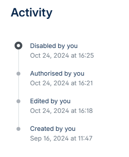 When a user clicks the authorise button, they will be taken to a summary page of the rule, where they will need to authorise it, e.g.: