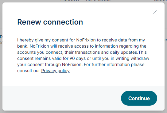 - Click the Continue button. You will be brought to your banking portal to re-authenticate. Follow the steps.
