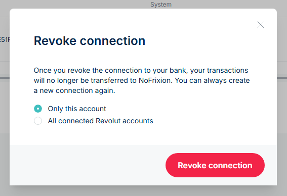 - Choose whether to revoke access for the selected account only, or for all connected bank accounts.