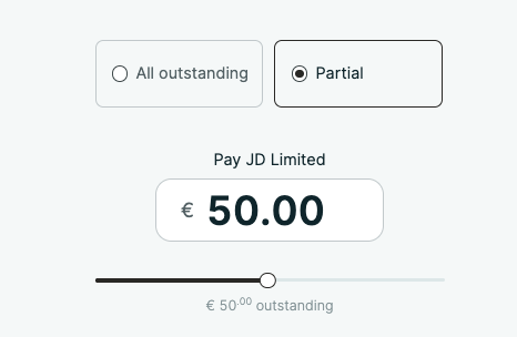 A partial payment set up offers full flexibility - meaning that customers can pay any amount, at any time, with no minimum or maximum limits.