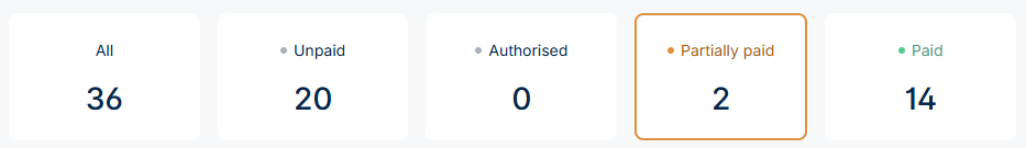 - Go to the All or Partially Paid tab to see all requests with outstanding balances: