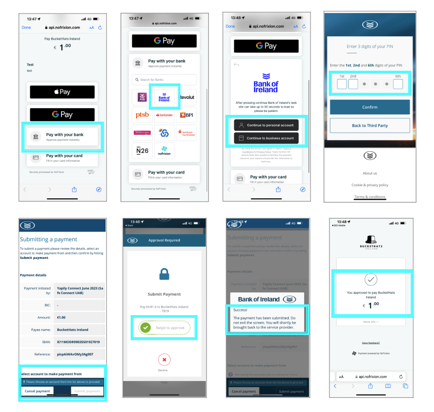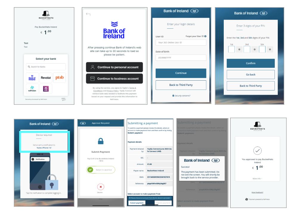 Pay by Bank Experience for the Customer (screenshots)