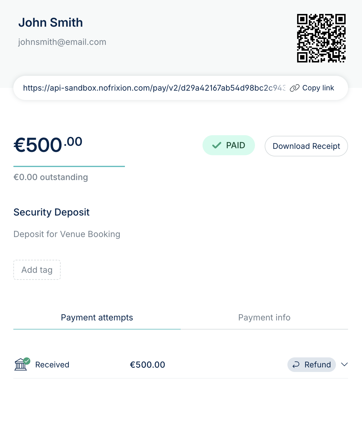 If the email receipt option was enabled when creating the payment request, the customer will automatically receive a receipt by email once the full payment has been successfully completed.