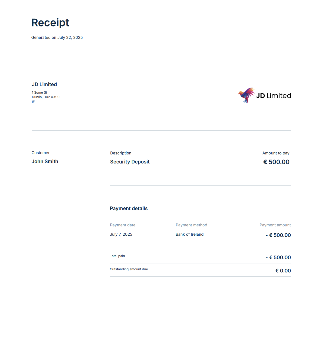 The details shown on the receipt will depend on your Payment Request Settings and can be customised to include the fields you’ve enabled.