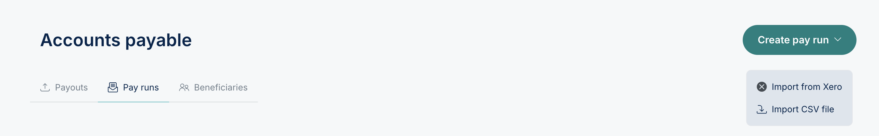 - Navigate to the Pay Runs tab in the Accounts Payable module.